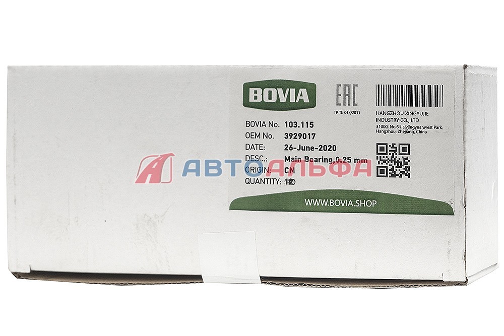 Вкладыш коленвала коренной верхний ремонт. (0.25 мм) КАМАЗ, НЕФАЗ дв. Cummins ISBe, BТ 3929017, 4938933, 3978818 - BOVIA, артикул 103.115 купить по низкой цене оптом и в розницу, с доставкой по России и СНГ,