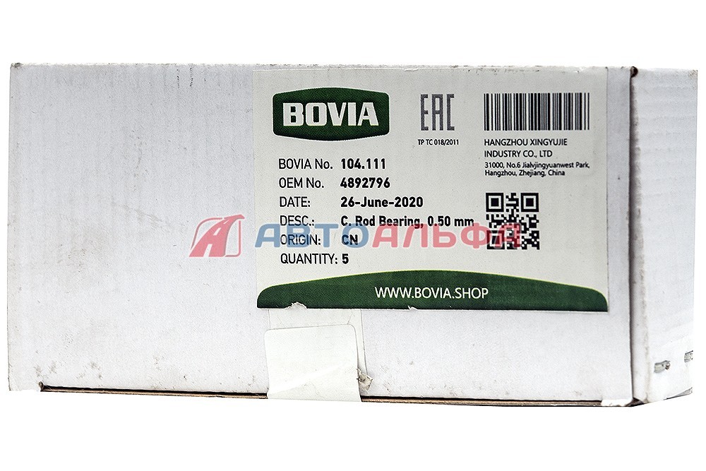 Вкладыш коленвала шатунный нижний ремонт. (0.5 мм) КАМАЗ дв. Cummins ISBe, ВТ 4892796, 4893693 - BOVIA, артикул 104.111 купить по низкой цене оптом и в розницу, с доставкой по России и СНГ,