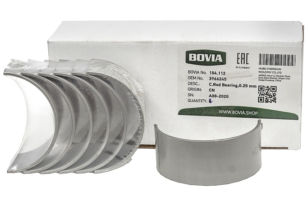 Вкладыш коленвала шатунный нижний ремонт. (0.25 мм) КАМАЗ дв. Cummins 6CT, ISC, L, ISLe 3966245 - BOVIA, артикул 104.112 купить по низкой цене оптом и в розницу, с доставкой по России и СНГ,
