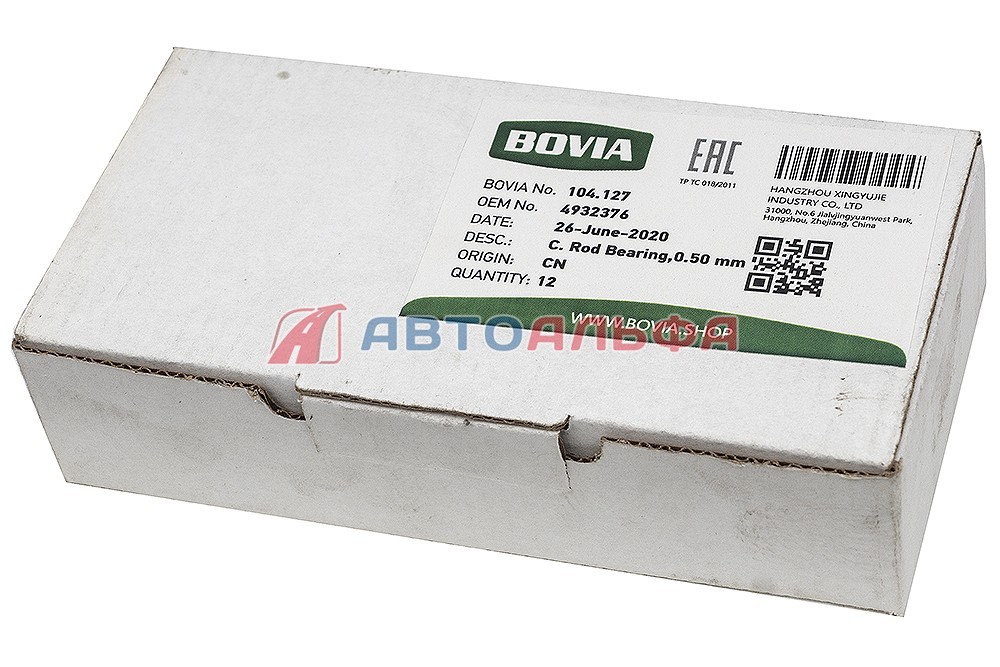 Вкладыш коленвала шатунный верхний ремонт. (0.5 мм) КАМАЗ, НЕФАЗ дв. Cummins ISBe,BТ 4932376, 3969562, 3901172, 3939860, 3939861 - BOVIA, артикул 104.127 купить по низкой цене оптом и в розницу, с доставкой по России и СНГ,