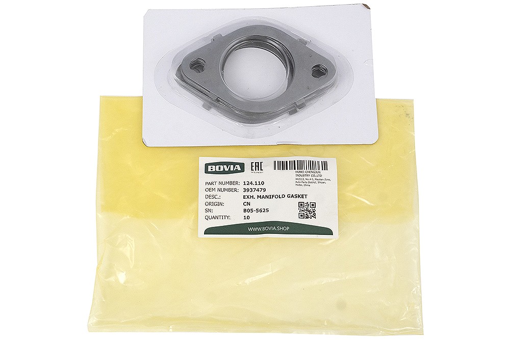 Прокладка коллектора выпускного (металл) КАМАЗ дв. Cummins ISLe, L 3937479, 5269779, 5259851 - BOVIA, артикул 124.110 купить по низкой цене оптом и в розницу, с доставкой по России и СНГ,