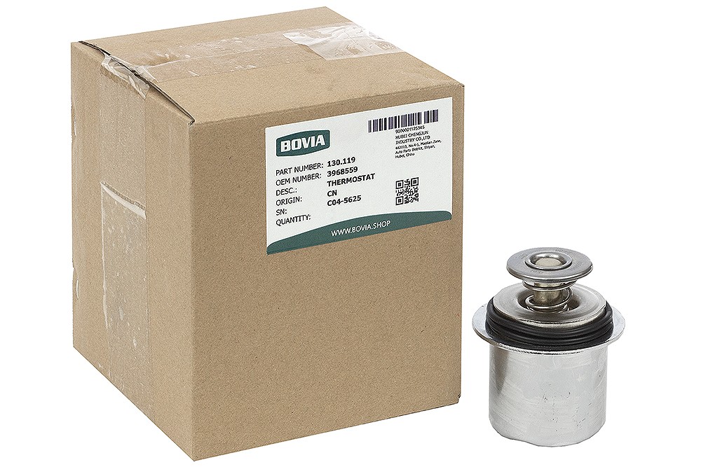 Термостат КАМАЗ дв. Cummins 6CT, ISLe 3968559, 3940632, 5274887, 5284903, 5337942 t=76C (большой) - BOVIA, артикул 130.119 купить по низкой цене оптом и в розницу, с доставкой по России и СНГ,