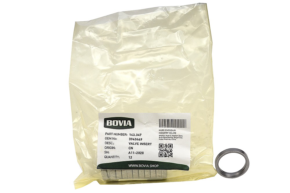 Седло клапана впускного (ГБЦ) КАМАЗ, НЕФАЗ, ПАЗ, ВАЛДАЙ дв. Cummins ISBe, ISF3.8 3943449 - BOVIA, артикул 143.347 купить по низкой цене оптом и в розницу, с доставкой по России и СНГ,