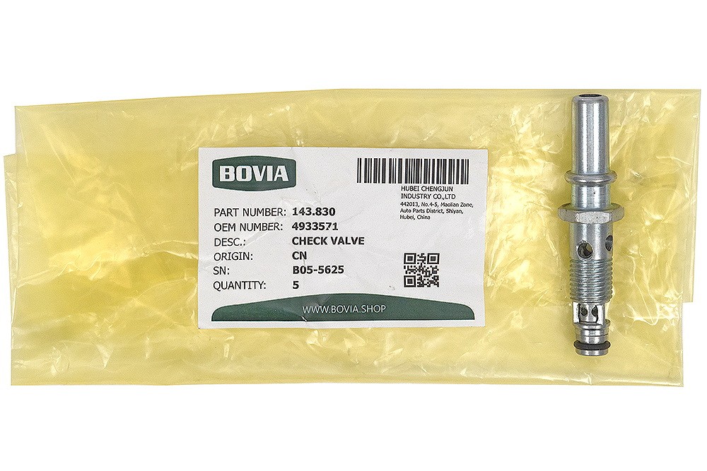 Клапан обратный топливной трубки КАМАЗ дв. Cummins ISLe 4933571 - BOVIA, артикул 143.830 купить по низкой цене оптом и в розницу, с доставкой по России и СНГ,