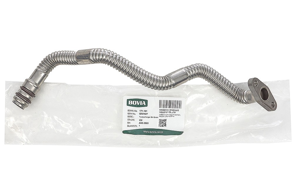 Трубка слива масла с турбины КАМАЗ, ПАЗ дв. Cummins 4ISBe 3287818, 3287819, 4898495, 4898497 - BOVIA, артикул 171.151 купить по низкой цене оптом и в розницу, с доставкой по России и СНГ,