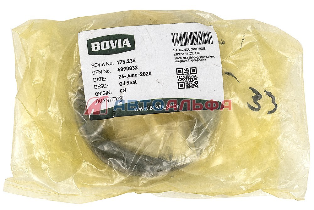 Сальник коленвала передний КАМАЗ, НЕФАЗ, ПАЗ, ВАЛДАЙ дв. Cummins ISBe, 6ISBe250, ISF3.8 4890832, 3955214, 5338295 - BOVIA, артикул 175.236 купить по низкой цене оптом и в розницу, с доставкой по России и СНГ,